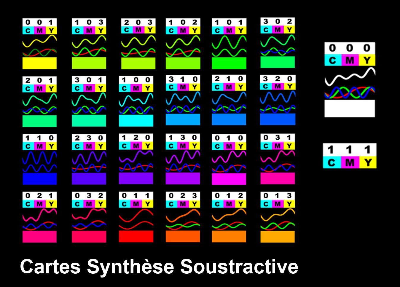 IMG.10 - Cartes de la Synthèse Soustractive CMY avec les cartes [000] et [111].