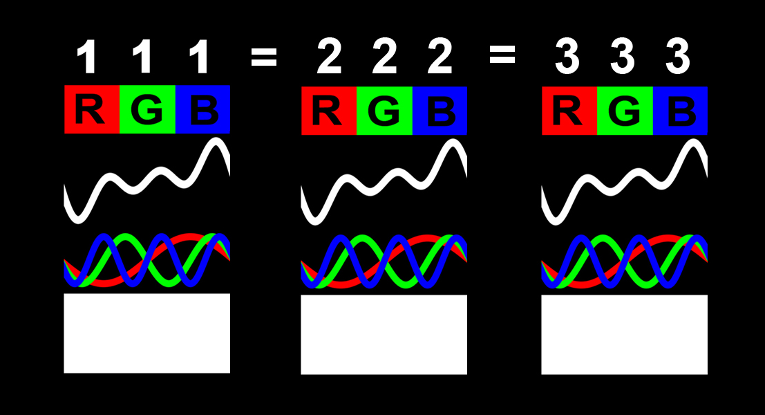 Lorsqu'il n'y a aucune lumière, les trois colonnes RGB sont à zéro (000).